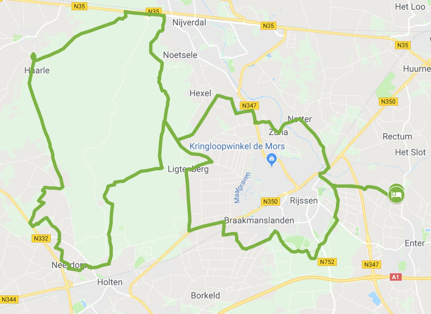 We rijden langs de noordkant van Rijssen door het mooie Zuna richting de Sallandse Heuvelrug. Daar kruizen we dwars doorheen over mooie glooiende paden, het hoogtepunt van deze route ligt op 66 meter. De natuur is het hele jaar door schitterend op de heuvelrug. Er is altijd wel iets moois te zien. Nadat we een hele ronde over de heuvelrug hebben gemaakt gaan we via de zuidkant van Rijssen weer richting Landgoed de Elsgraven.